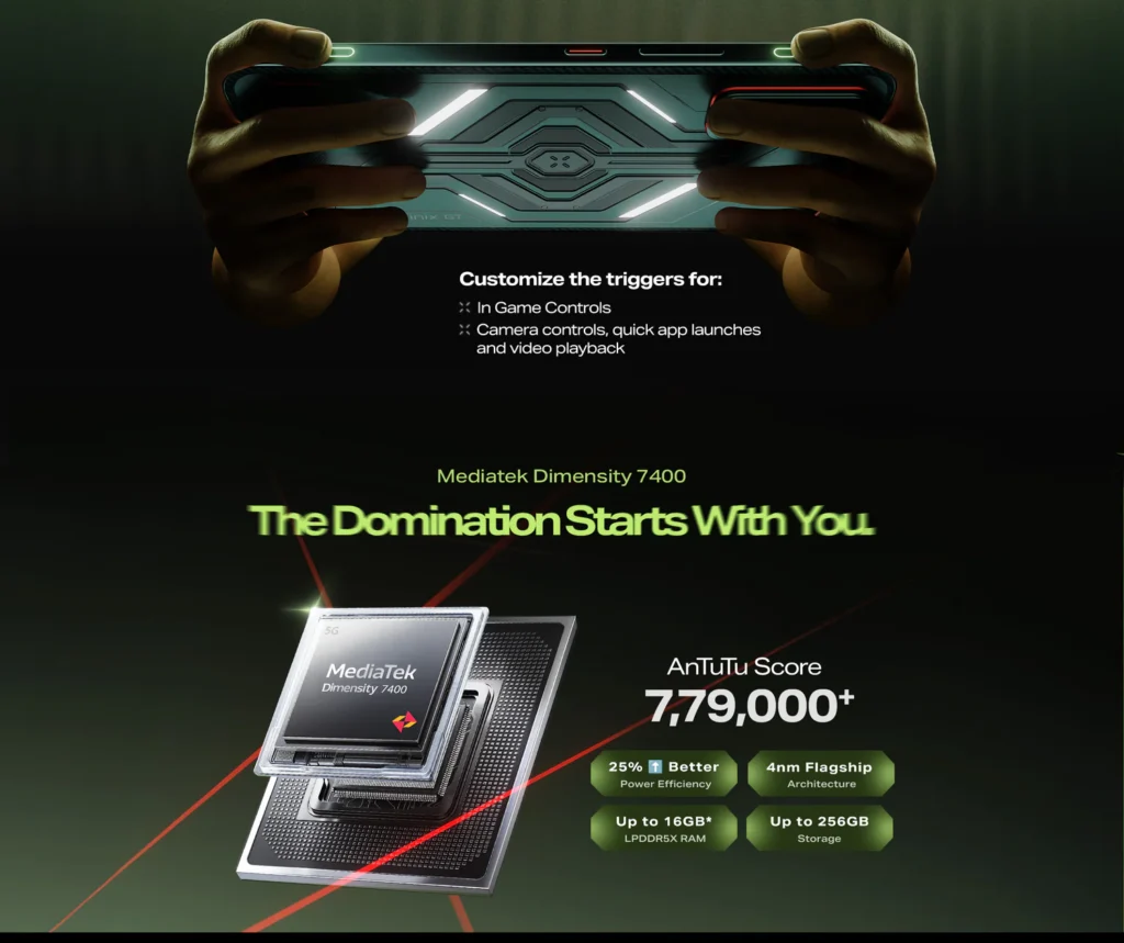 • Extras: RGB Mecha Light, Shoulder Triggers, 3D Vapor Cooling, Bluetooth Walkie-Talkie Mode